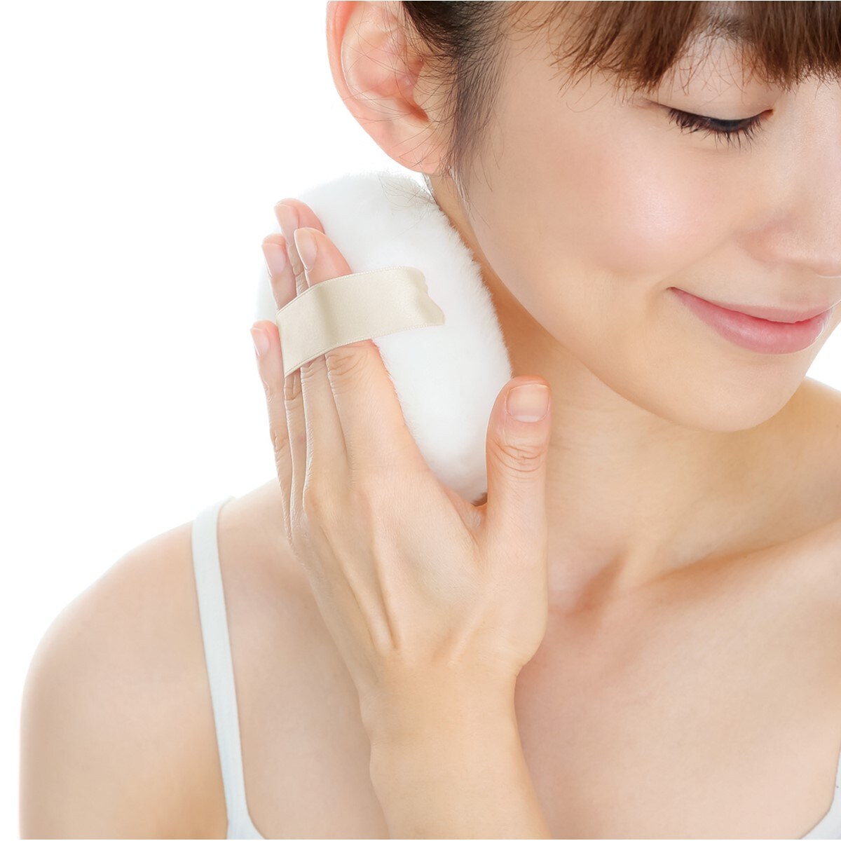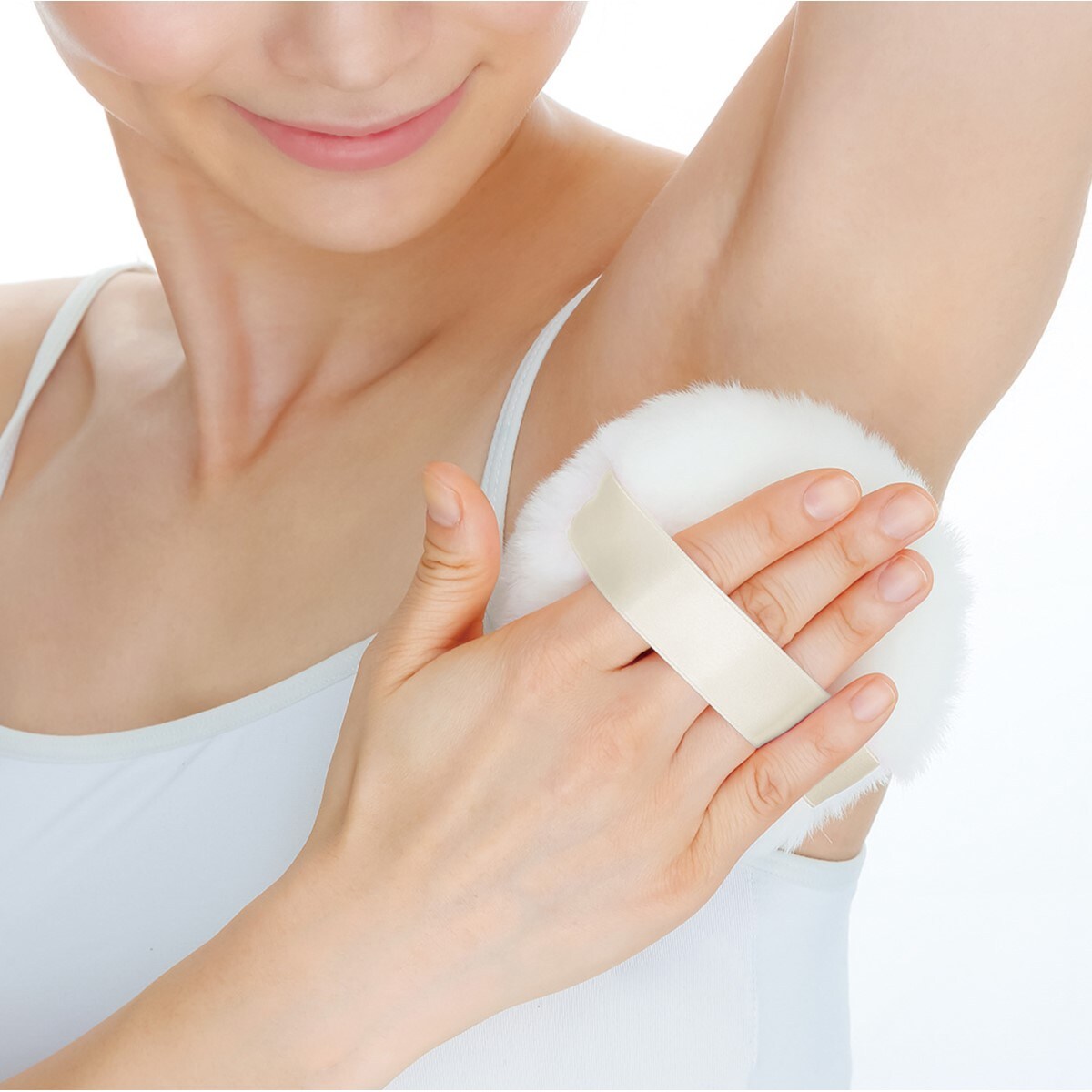 粉飛びしにくい固形タイプ(ひんやりタイプ)。※パフのリボンの色が変更になることがあります。
