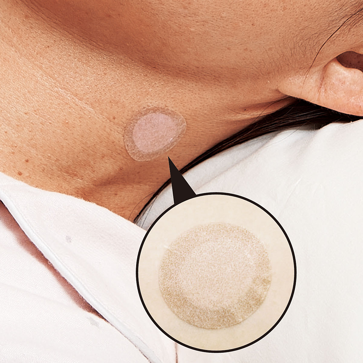 パッチを貼ったまま、寝るだけ。オイルジェルだから、肌にやさしく一晩中しっかり密着。寝ている間に配合成分がじんわり角質層まで浸透します。