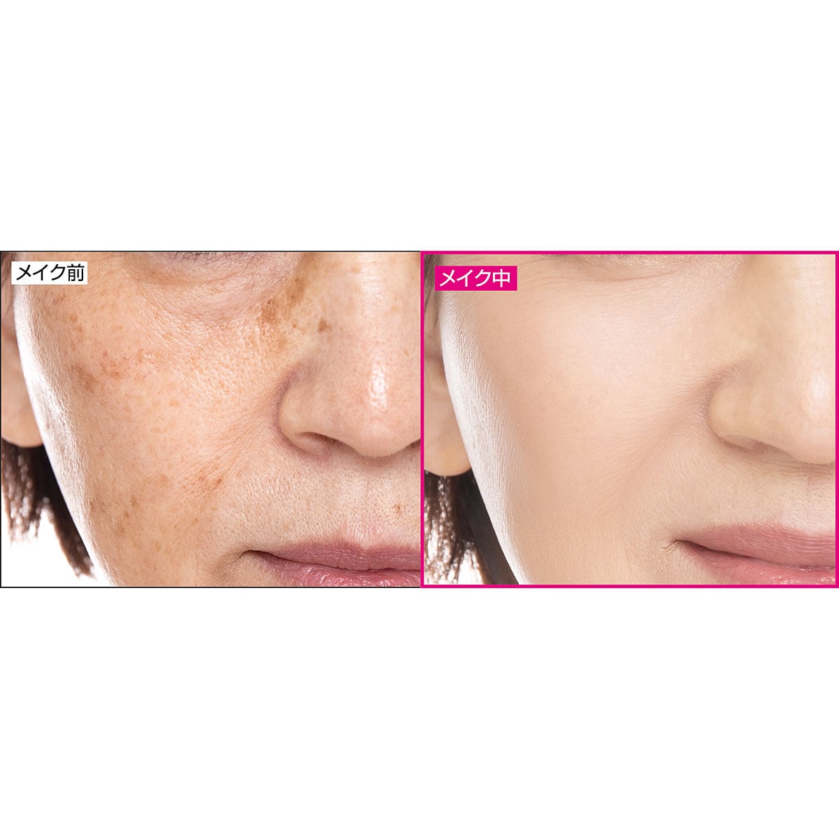 毛穴、シミ、色ムラ、肌悩みもしっかりカバー ※メーキャップ効果による。※仕上がりには個人差があります。※モデルは仕上げにポイントメイクを施しています。