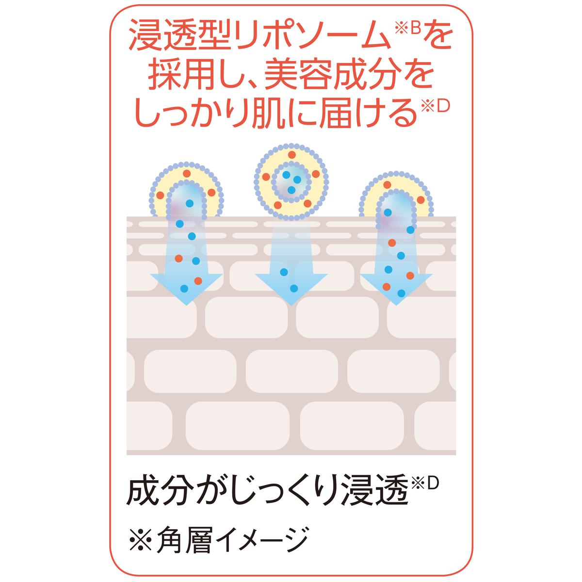 浸透型リポソーム(※B)を採用し、美容成分をしっかり肌に届ける(※D) ※角層イメージ※B 浸透型とは角層まで ※D 角層まで