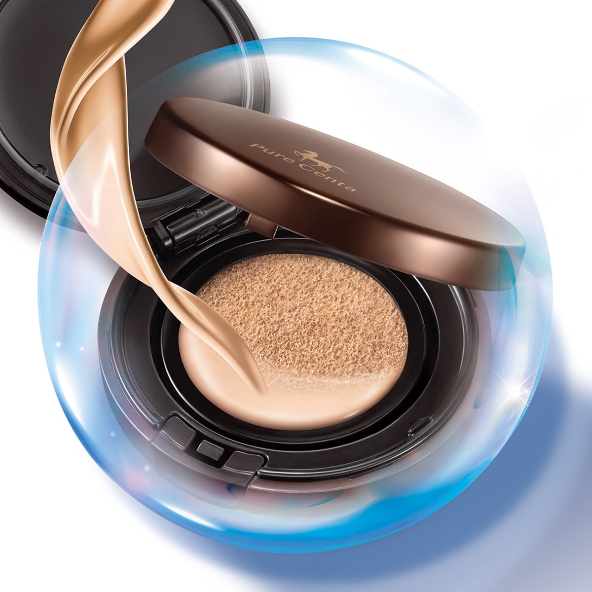 ダブルの馬プラセンタ(※1)(※2)配合クッションBBファンデ。厚塗り感のない、軽やかなつけ心地。美容液成分配合でメイクしながらスキンケア!
