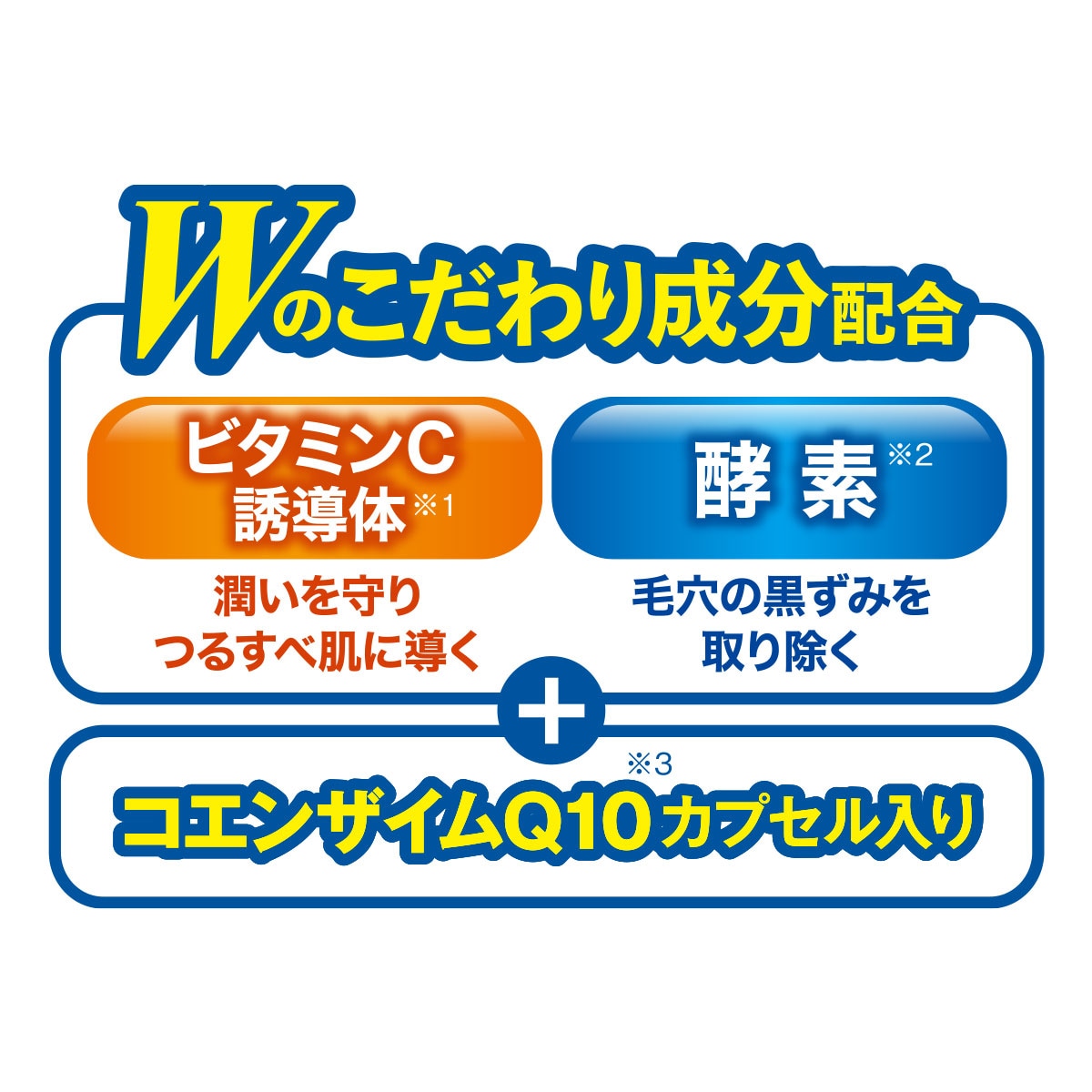 Wのこだわり成分配合 ※1 アスコルビルリン酸Na(保湿成分) ※2 パパイン、リパーゼ(洗浄成分) ※3 ユビキノン(保湿成分)