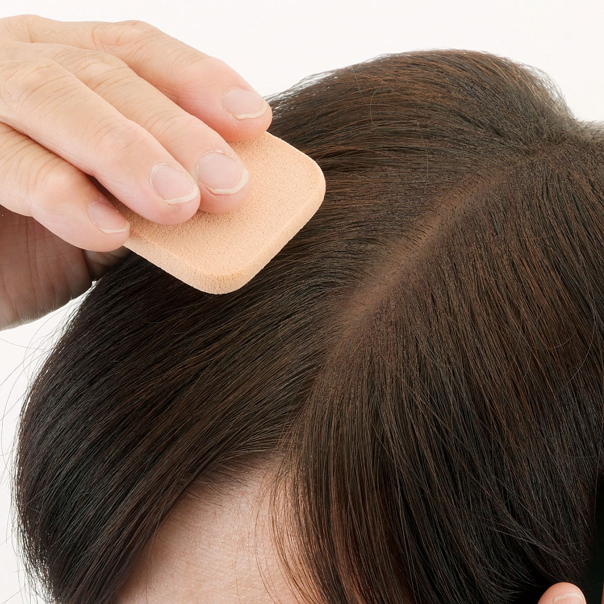 頭皮にパタパタはたきこむだけ。濃淡も自分で調整できます。