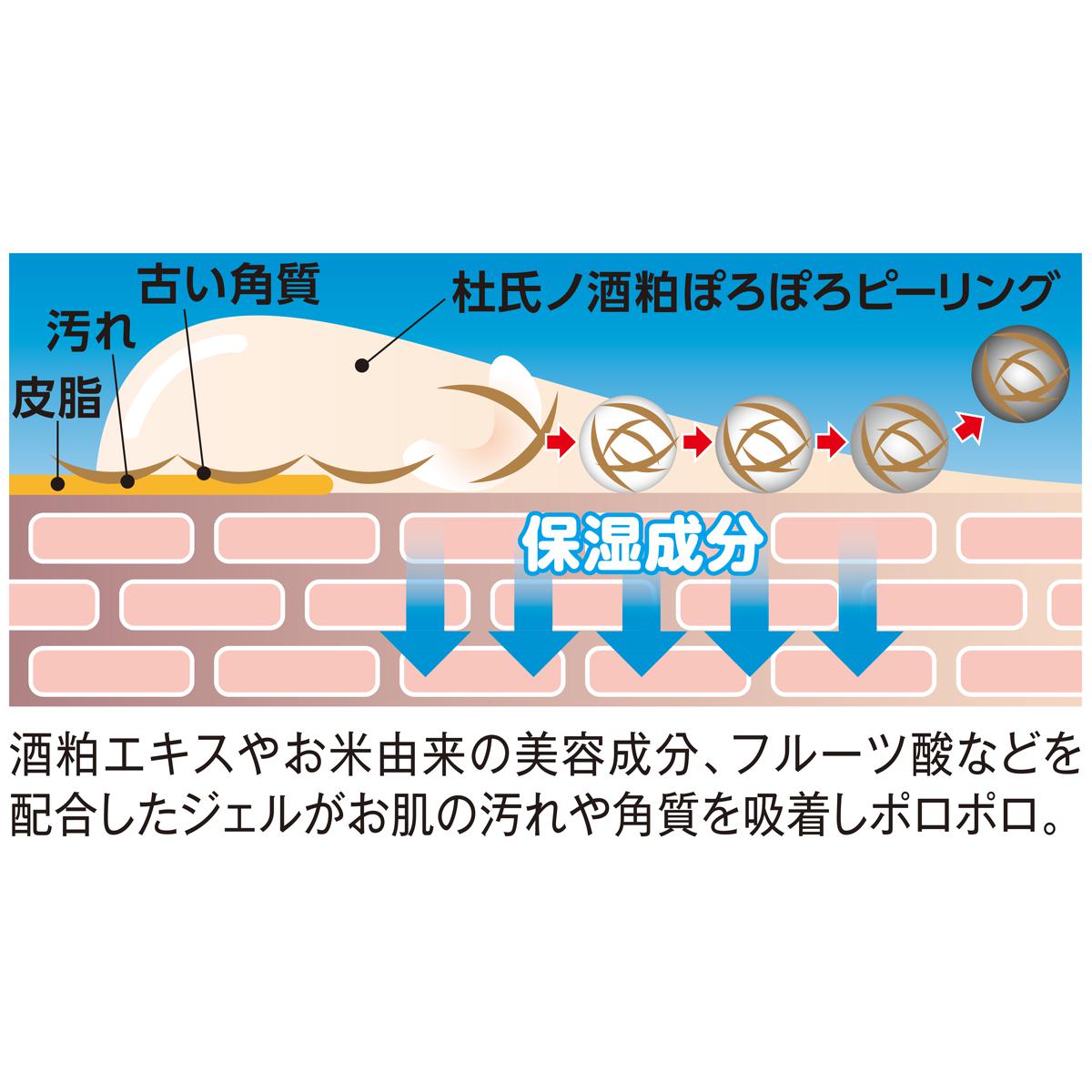 くすみ(※A)・黒ずみ(※B)角質を絡めとる!酒粕エキスやお米由来の美容成分、フルーツ酸などを配合したジェルがお肌の汚れや角質を吸着しポロポロ。伊予柑の香り(精油)。~全身にも使用OK~首もとやワキ、ヒジ、カカト、ヒザに。~近江で216年続く老舗酒造の酒粕エキス(※1)~1805年創業の老舗酒造。全国新酒鑑評会で金賞を受賞する近江を代表する酒造メーカーの酒粕エキス(※1)を配合。※1 保湿成分※A 古い角質 ※B 皮脂汚れ