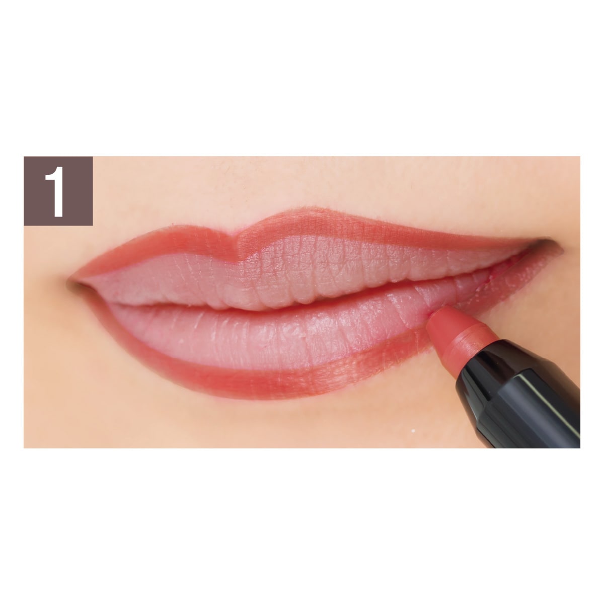 細くてはっきり描けるリップライナーと、なめらかで鮮やかな発色の口紅の1本2役♪落ちにくい美発色のライナーリップ。輪郭が描けるから口角もキュッと、くっきり若々しい口元に。使いやすい大人のナチュラルカラー。~スルスル簡単!しっとり潤う~1.リップライナーのように輪郭をスルスル描きます。2.口紅のようにしっかり唇全体を塗りつぶします。