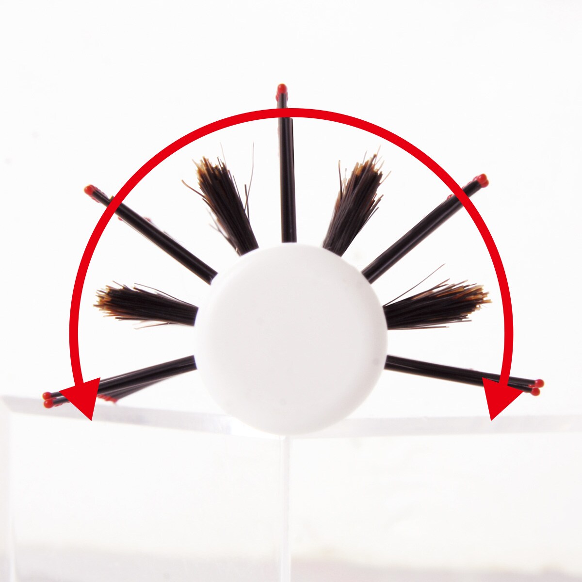特殊2段構造 長いナイロンピンと短い天然毛、ダブルで根元から髪を起こす。