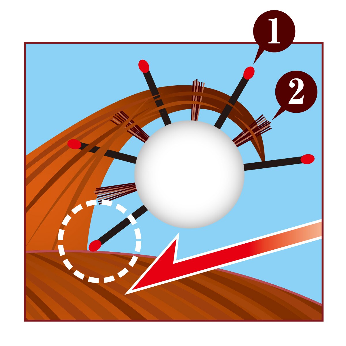 (2)短い毛が表面をなでてツヤ出し効果。