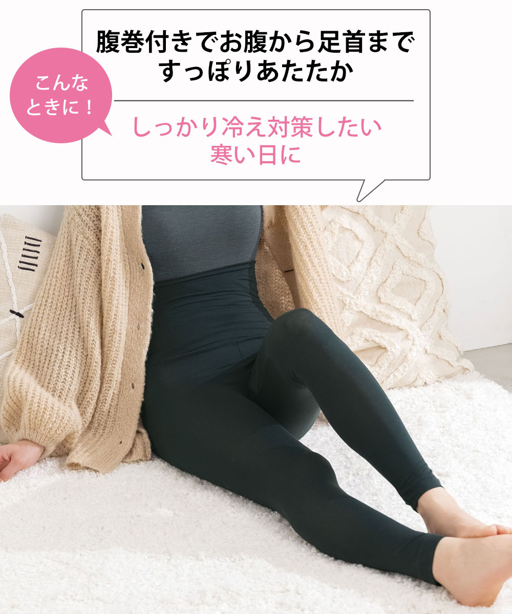 【レディスインナー Smart Heat®シリーズ累計販売枚数220.8万枚突破!(2024年8月末現在)】薄くて軽くて、着た瞬間から暖かい♪吸汗・速乾、抗菌防臭も備えた吸湿発熱素材「スマートヒート®」の腹巻付き10分丈インナー。ウエストにゴムを使わず、ラクな着心地。