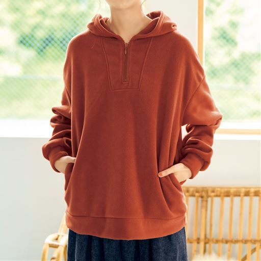 【ぽっちゃりさんサイズ】軽くてあたたか フリースパーカープルオーバー