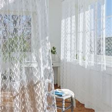 可憐な花柄を優雅でエレガントなアーガイル調に仕上げた、チュールレースカーテンです。やさしい光をお部屋に取り込み、ゆったり心地いい時間が流れます。