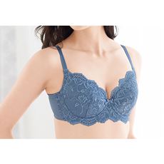 幅広ストラップで肩がラク。アンダー大きめさんのバストをしっかり支える安定感がうれしい、エレガントなレーシィブラ