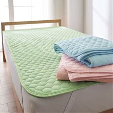 接触冷感生地「スマートドライ®」と「調湿機能わた」でひんやりサラサラなパッドシーツです。寝苦しい季節も朝までぐっすり気持ちよく! 節電対策にもおすすめです。マットレスにも敷き布団にも使えます。