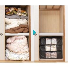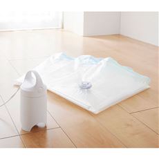 かさばる布団には、やっぱり圧縮収納!専用吸引器を使えば、らくらくスピード圧縮。もう、掃除機の出番はありません!