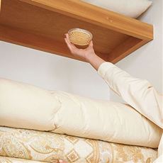 布団を整頓しながら、すのこで湿気対策! 押入れ用の布団ラックです。幅が伸び縮みする桐のすのこで、布団のサイズに合わせてぴったり収納。押入れのスペースを無駄なく使えます。