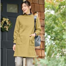 ぬくもりトップス冬の定番!お家でも外でもあったか裏起毛のハイネックチュニック。