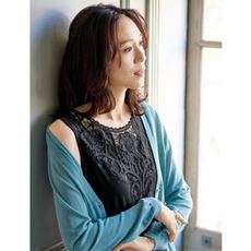 胸元の華やぎレースが存在感のあるエレガントを印象づけるタンクトップ。