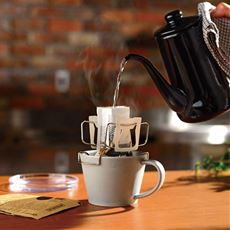 カップの上でドリップするから、注ぐ量がわかりやすい。コーヒードリップをもっと手軽にするドリップバッグホルダー。