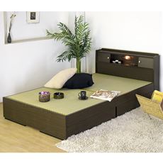 【ネット限定】 本い草の香りが爽やかな畳ベッド。ヘッドボードは照明・引出し付きで使い勝手も良好です。フレームは日本製で末永くお使いいただけます。