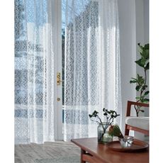 太さの異なる5種類の糸で編み上げた、デザイン性のあるレースカーテンです。まるでリゾートホテルの窓辺のような、おしゃれな雰囲気を演出。やさしい光をお部屋に取り込み、ゆったり心地いい時間が流れます。