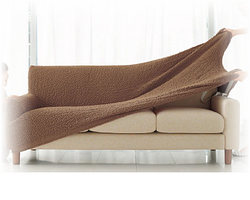 ソファーカバーはただ上にかけるだけのものだけではなく、ちょうどストッキングのように、ソファーの形にピッタリ添うようなフィットタイプがあります。