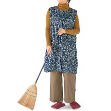 軽くて暖かい裏起毛生地でお尻もすっぽり隠れるロング丈の前開きかっぽう着。ちょっとしたお買い物にもおすすめ!