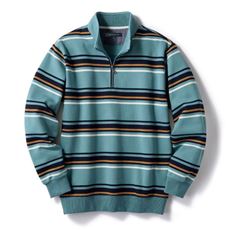 表情豊かなかすりボーダーがおしゃれ味をプラス綿混日本製プルオーバー