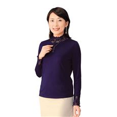 袖のスカラップレースが程よくフェミニン微光沢のある裏起毛のポンチ素材で、きれいに防寒ドロップショルダーと後ろ丈長めで体型カバーも叶う