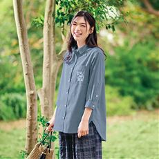 バンドカラーが大人っぽい肌ばなれのよい楊柳シャツ!