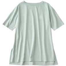 汗染みのお悩みに応えた、チュニックTシャツ。すぽっと着れて体型カバーもかなう、ゆったりシルエット。