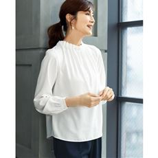 いつものスーツにプラスワン!伸びやかな着心地のシルキーサテンブラウス。