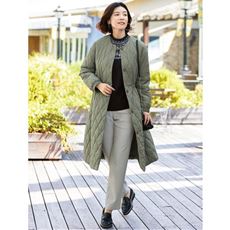 薄くて軽くあたたかなキルト素材のロングコート。保温性のあるリサイクル蓄熱保温中わたETHERMALOFT®を使用。