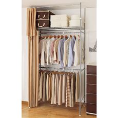 大容量のコート掛けで一気にお片付け!壁一面を収納場所に。ワードローブのような壁面収納です。クローゼットや押入れにあふれている洋服の収納場所に。コート掛けの下に洋服タンス・チェストを置いて目隠しに♪奥行も2種類あるカーテン付きの大型ハンガーラックです。