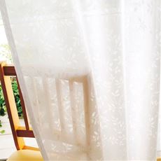 【ネット限定】柔らかいボイル生地に花柄の刺繍が入った、かわいいレースカーテンです。キラリと光る上品なシルバーの糸がアクセントに。風合いのある生地を通して、ナチュラルな明るい光がお部屋に入ります。