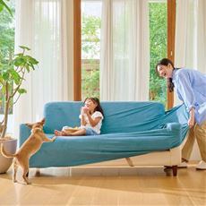 朗報!愛猫・愛犬のひっかき傷のお悩みに!ペットや子どもの「うっかり汚れ」も、サッとかけるだけで安心。愛用ソファが変身!のびのびフィットソファカバー