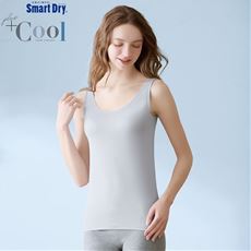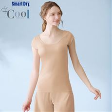 【Smart Dry® plus Cool】さらっと、ひんやり、気持ちいい。広めの衿開きとカップ付きで、1枚で着られて便利でラク。接触冷感や吸汗・速乾など、夏にうれしい快適機能満載のインナー