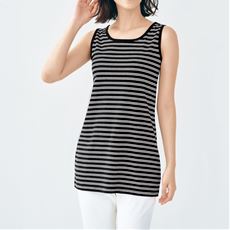 やさしくフィットして胸元のチラ見え防止。綿100%のタンクトップ。