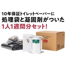 10年保証トイレットペーパーに処理袋と凝固剤がついた1人1週間分セット!