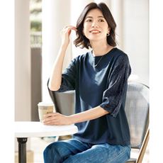 夏の着こなしを華やかに、涼しげにする袖レース使いのTシャツです。