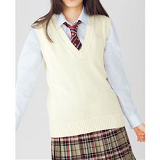 暑がりさんにおすすめ!薄手素材でムレにくく、抗菌防臭機能付きで汗のニオイも気になりにくい♪夏に嬉しいVネックニットベストだよ。小さいサイズから、大きいサイズまで揃った豊富なサイズ展開も魅力(S~LL)。学生制服にも、なんちゃって制服にもおすすめです。