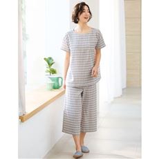 胸二重仕立てで1枚で着ても透けにくくて安心!シボ感があり肌離れのよい綿100%楊柳ダブルガーゼが心地よいパジャマ。入院や部屋着、ギフトにもおすすめです。Sサイズ、ふっくらさん対応サイズplump(プランプ)もあります。