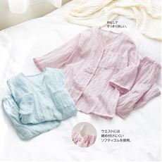 播州織のさざ波素材のパジャマでで心地よい眠りへ。日本製で安心。小柄な方にもぴったりのプチサイズもご用意。7分袖・8分丈でさらに涼しい。入院や母の日のプレゼントにもおすすめです。