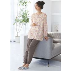 胸二重仕立てで1枚で着ても透けにくくて安心!シボ感があり肌離れのよい綿100%楊柳ダブルガーゼが心地よいパジャマ。入院や部屋着、ギフトにもおすすめです。Sサイズ、ふっくらさん対応サイズplump(プランプ)もあります。