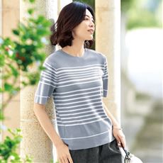 春先のまだ肌寒い日に。カジュアルでキレイ見え。お手入れラクな大人ボーダー。