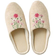 軽やかな履き心地で気分爽やか!自然素材の風合いと繊細な刺しゅうが調和した、温かみのあるおしゃれなスリッパです。