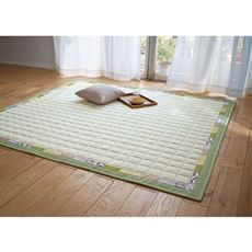 さらりと麻風タッチでベタつかない! 夏気分のリーフ柄が涼やかなさらさらラグです。