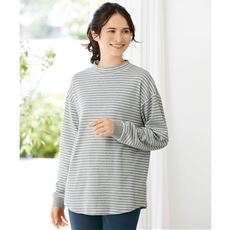 ほんのり美しい光沢、優しくなめらかに肌になじむ質感が魅力の繊維に、ソフトなストレッチ性を持たせたしなやかな生地を使用。首と二の腕を隠してくれるシルエットがうれしい。