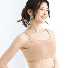 術後のバストを優しく包み込むブレストケアブラ。カップ裏は綿混メッシュで肌にやさしく涼やか。大きいサイズもご用意しました