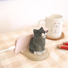 スマホと眼鏡をしっかり支える、やさしい表情の木彫りアニマルたち