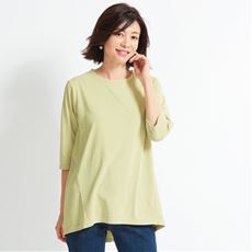 とろみのあるさらりとした肌ざわりの素材に、接触冷感と吸汗速乾機能をプラス。華やかに彩を添えるプリントTシャツ。