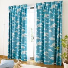 【ネット限定】爽やかなブルーがお部屋のアクセントに! 青空模様のプリントカーテンです。ほどよく光をやわらげ、お部屋が明るく感じられる2級遮光です。